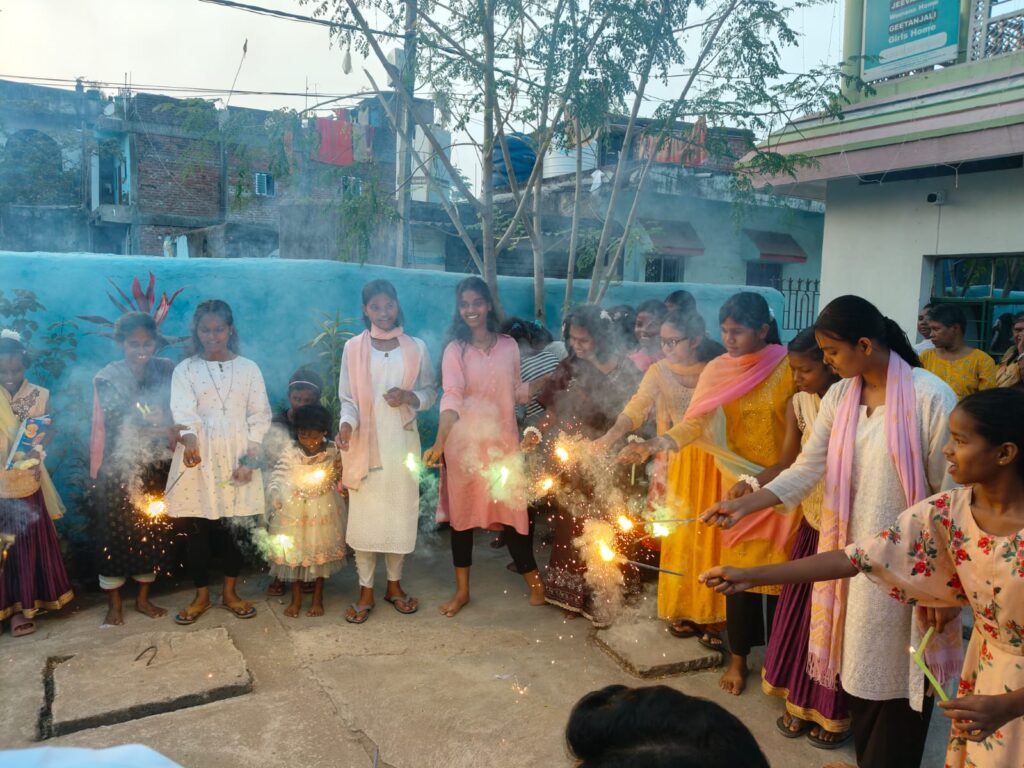 The celebrations saw the children enjoying sweets and lighting sparklers in a festive atmosphere.