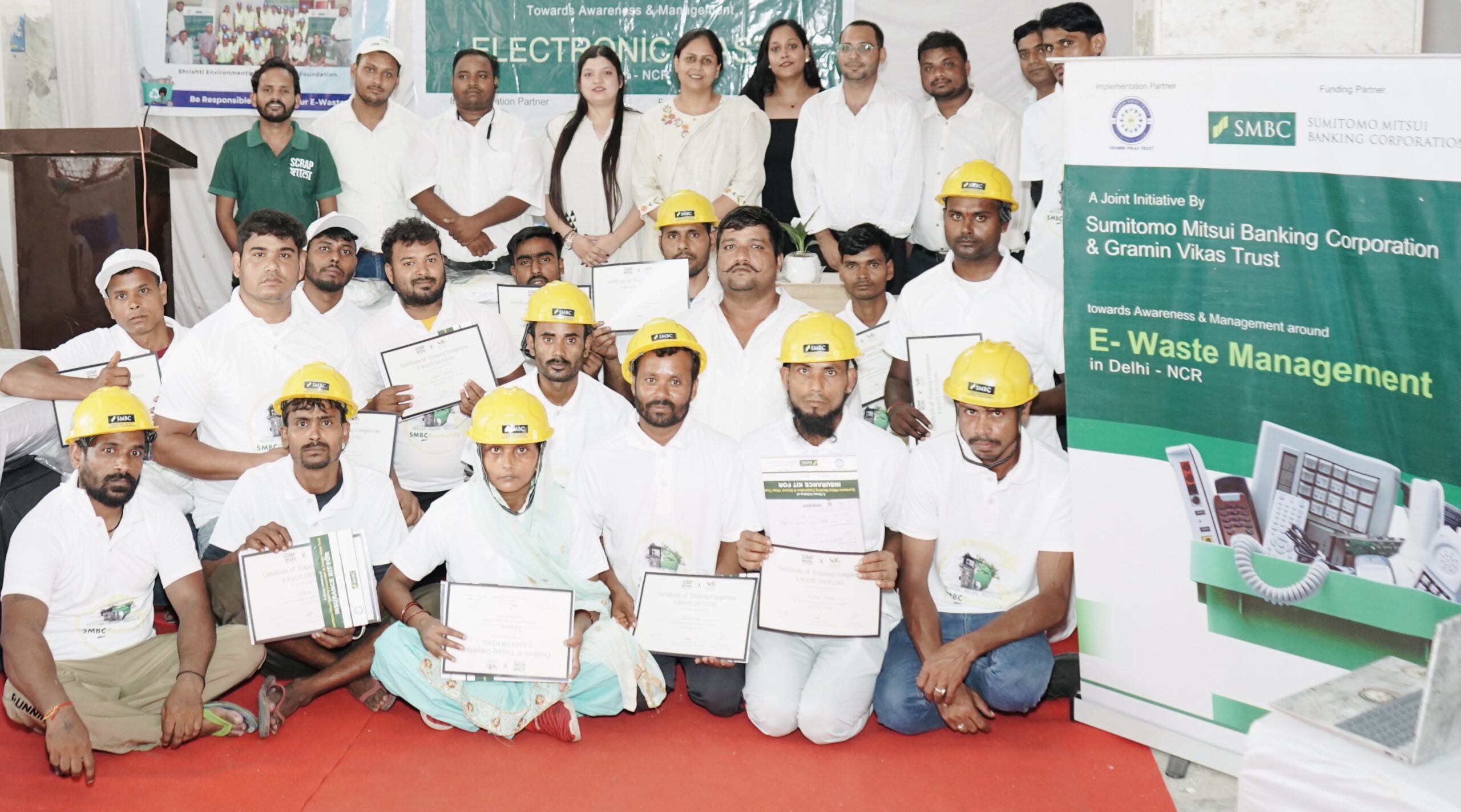 New Delhi, September 23: Gramin Vikas Trust (GVT), in partnership with Sumitomo Mitsui Banking Corporation (SMBC), has conducted an empowerment drive at Katwaria Sarai, providing 25 informal waste workers with safety kits, uniforms, and insurance cover. The initiative aims to strengthen social security and promote safe practices in e-waste management across Delhi-NCR.