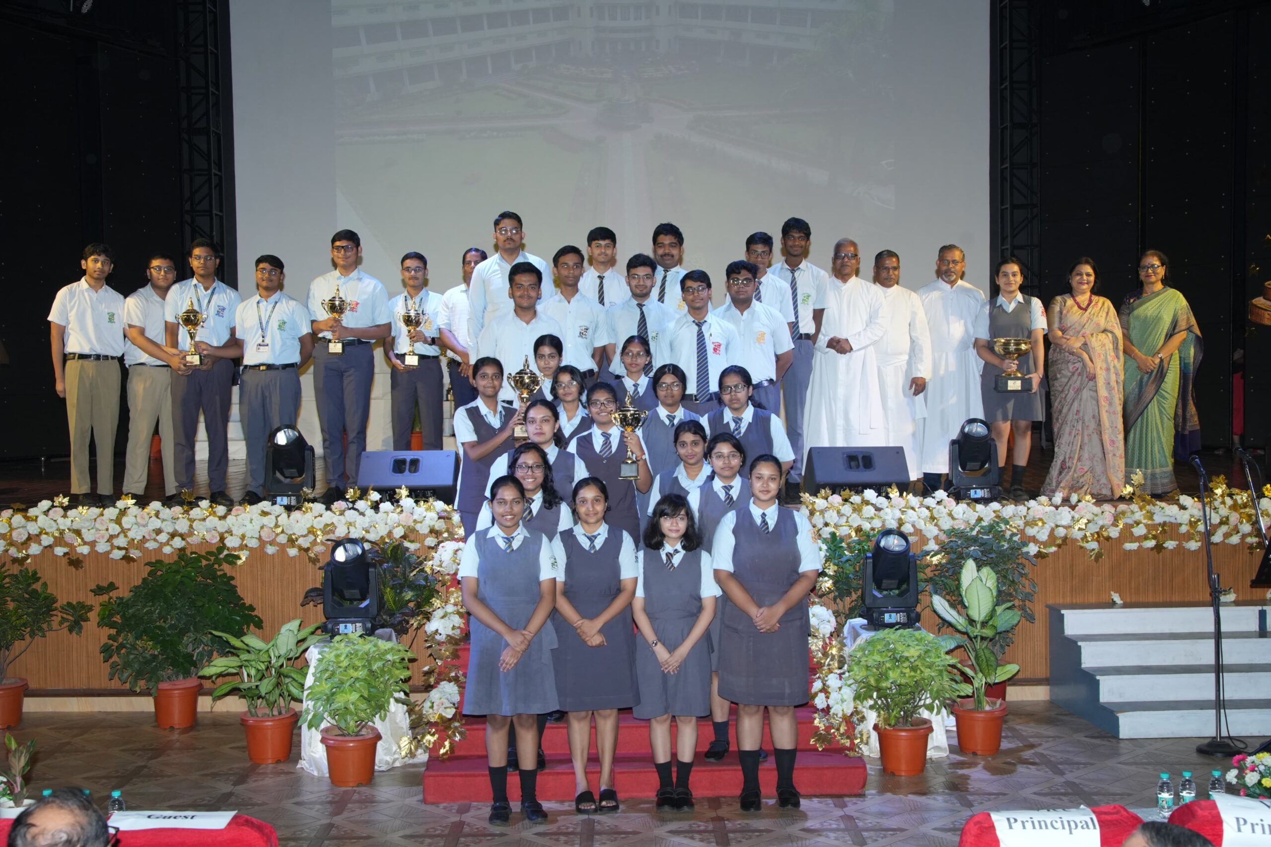 The event was headlined by Chief Guest Fr Jerry Cutinha, S.J., Provincial of the Jamshedpur Jesuit Province, who applauded the school’s emphasis on excellence rooted in human values. Fr Cutinha urged the students to continue striving for excellence in keeping with the spirit of Magis. He emphasised the need to be excellent in human values along with academic excellence. He appreciated the school management for their dedication and hard work.
