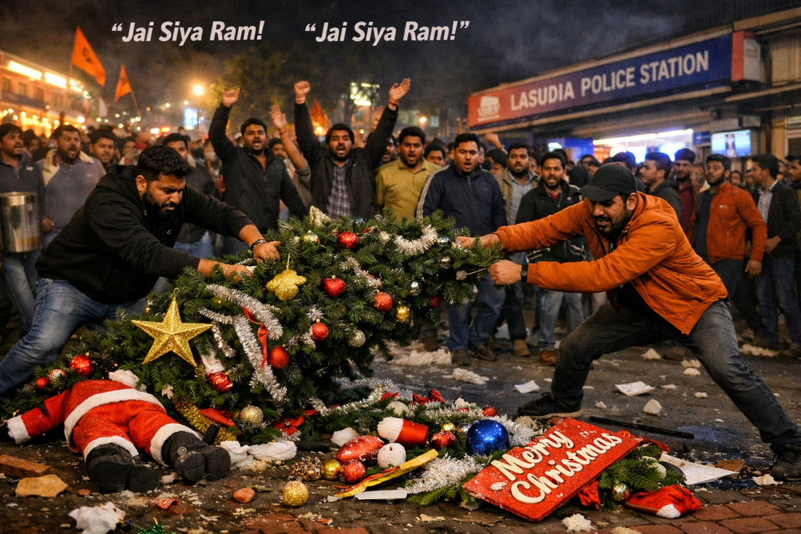 Indore, Dec 27: A Christmas celebration in Madhya Pradesh’s Indore was disrupted on December 25, 2025, after a mob vandalised decorations and a Christmas tree at a public event, police said.