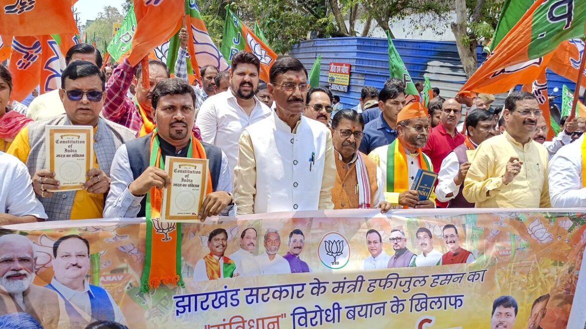 Ranchi, April 19: A delegation of Bharatiya Janata Party (BJP) leaders, led by State President and Leader of Opposition Babulal Marandi, met Jharkhand Governor Santosh Gangwar on Friday, demanding the dismissal of Minority Welfare Minister Hafizul Hasan Ansari for allegedly making remarks that undermine the Indian Constitution.