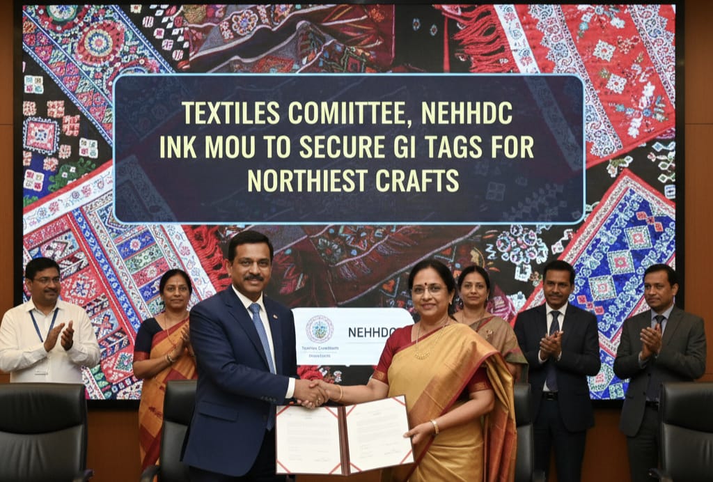 Guwahati, Jan 9: In a significant step towards protecting the intellectual property of traditional crafts from India’s Northeast, the Textiles Committee under the Ministry of Textiles and the North Eastern Handloom and Handicraft Development Corporation (NEHHDC) on Thursday signed a Memorandum of Understanding (MoU) to promote Geographical Indications (GI) registration and post-GI initiatives.