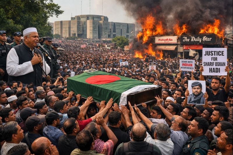 Dhaka, Dec 21: Tens of thousands of mourners flooded the streets of Bangladesh’s capital on Saturday to attend the funeral of Sharif Osman Hadi, a prominent student leader whose killing has triggered nationwide protests and renewed political tensions.