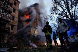 Residents described being jolted awake by explosions as air-raid sirens sounded throughout the night. “It’s horrible, it’s scary, in one moment there is no life,” said Olena Lapyshniak, 49, a Kyiv resident whose apartment building was severely damaged. “There’s no military infrastructure here, nothing. Just homes.”